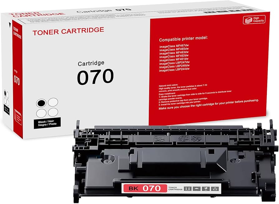 The Canon 070 Black Toner Cartridge (Part No. 5639C001) is engineered for professional-grade performance with Canon MF465dw, MF462dw, LBP247dw, and LBP246dw laser printers. With a yield of up to 3,000 pages, it supports high-volume black-and-white printing needs. This cartridge ensures crisp, clear output and is TAA-compliant, making it suitable for various commercial and government applications. Manufactured in South Korea, it emphasizes quality and compatibility with minimal downtime.