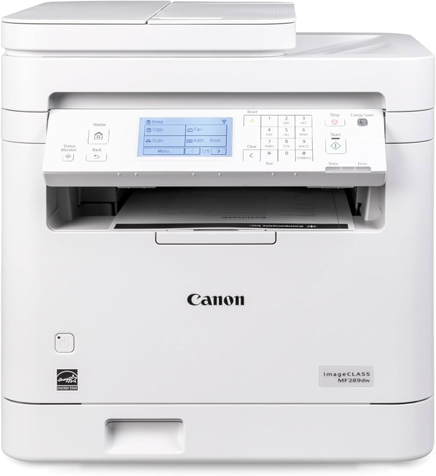 The Canon imageCLASS MF289dw is a compact yet versatile monochrome laser all-in-one printer, ideal for small to mid-sized offices seeking reliable and efficient multitasking performance. Combining print, scan, copy, and fax functions, the MF289dw delivers print speeds of up to 35 ppm on letter-size paper with a first-page-out time of approximately 4.9 seconds. Its engine supports resolutions up to 600 x 600 dpi and includes multiple printer languages including PCL 5/6 and UFR II for seamless compatibility. Connectivity is flexible, featuring USB 2.0, Ethernet, and Wi-Fi for integration into IT infrastructures. It includes a 250-sheet paper cassette and 50-sheet duplex ADF, with system support across major OS platforms. With 256 MB RAM and low power consumption modes, the MF289dw delivers reliable and eco-friendly performance. Backed by a 1-year limited warranty, this model is manufactured in Vietnam to Canon’s standards.