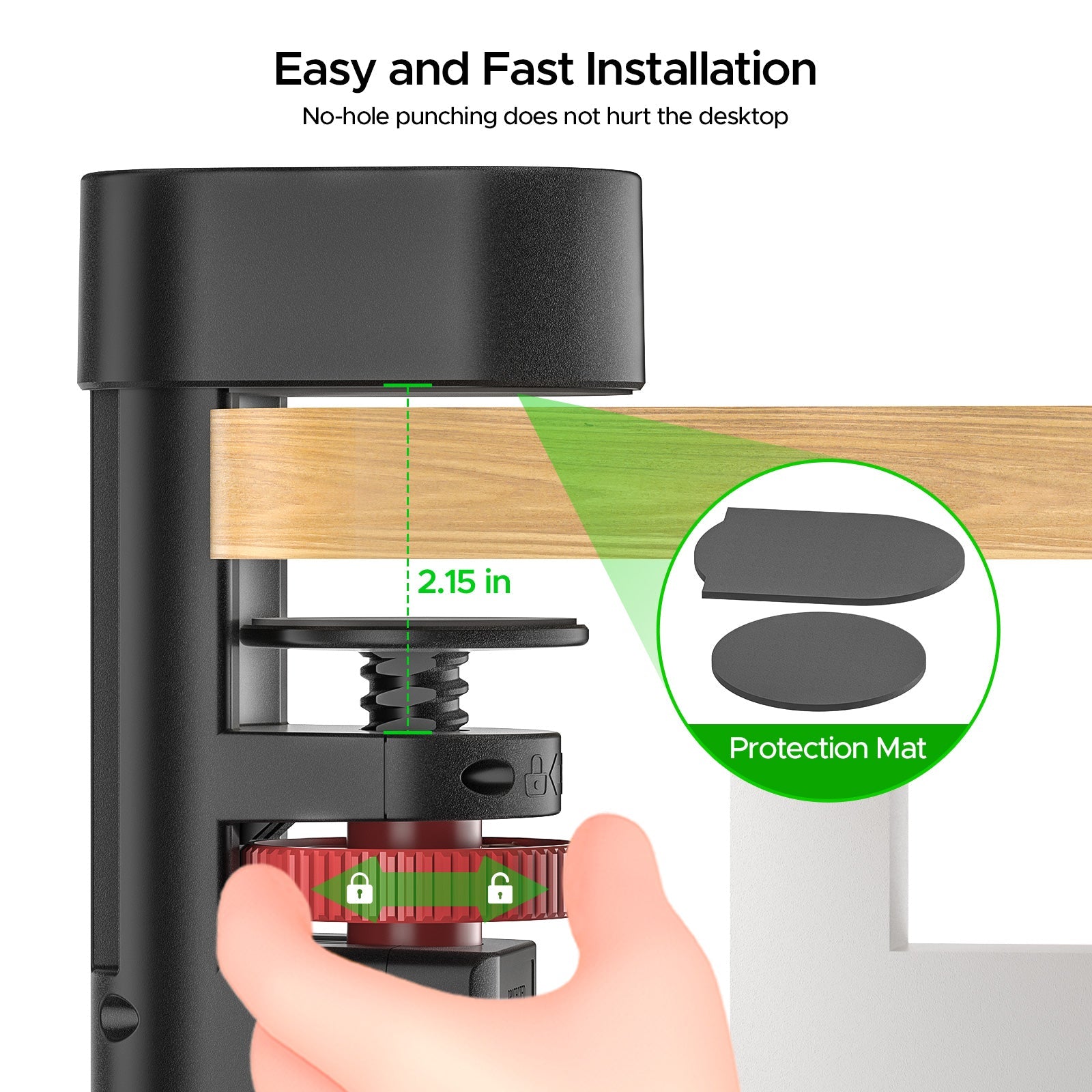 No drilling required! Simply clamp the CRST Desk Clamp Surge Protector onto any desk up to 2 inches thick. Non-slip pads prevent desk scratches and ensure stability. This sleek design fits seamlessly into your workspace, offering convenience without compromising on style.