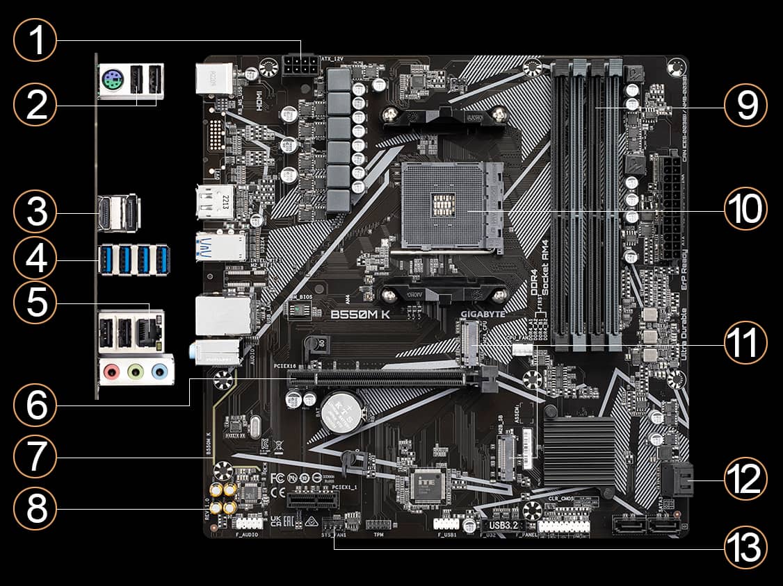 GIGABYTE B550M K Micro ATX AMD B550 Motherboard, Socket AM4, DDR4, 128GB