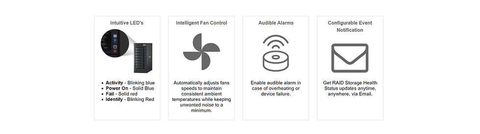 • Comprehensive RAID level support provides scalable protection and performance options for critical data.