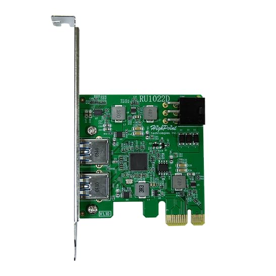 The HighPoint RU1022D is a high-performance USB-C 3.2 Gen 1 host controller featuring a PCIe 3.0 x1 interface and dual USB-C ports delivering 5Gb/s each. It offers native xHCI support for driverless installation across Windows, Linux, macOS, and VMware. With compact chassis dimensions and a 1-year warranty, it's ideal for enterprise upgrades or peripheral expansions. Though not TAA-compliant, it delivers modern expandability and reliable compatibility in a versatile, easy-to-install format.