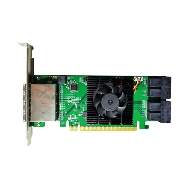 The HighPoint SSD7184 PCIe Gen3 x16 RAID controller is engineered for high-performance NVMe storage in professional environments. Supporting 8 U.2/U.3 or M.2 devices through internal and external ports, and leveraging a PCIe 3.0 x16 interface, it is ideal for data-intensive applications. RAID levels 0, 1, 10, and Single offer performance and redundancy options, with management supported via WebGUI, CLI, BIOS, and UEFI for both Windows and Linux systems. Its low-profile form factor facilitates easy integration into workstations or server enclosures.