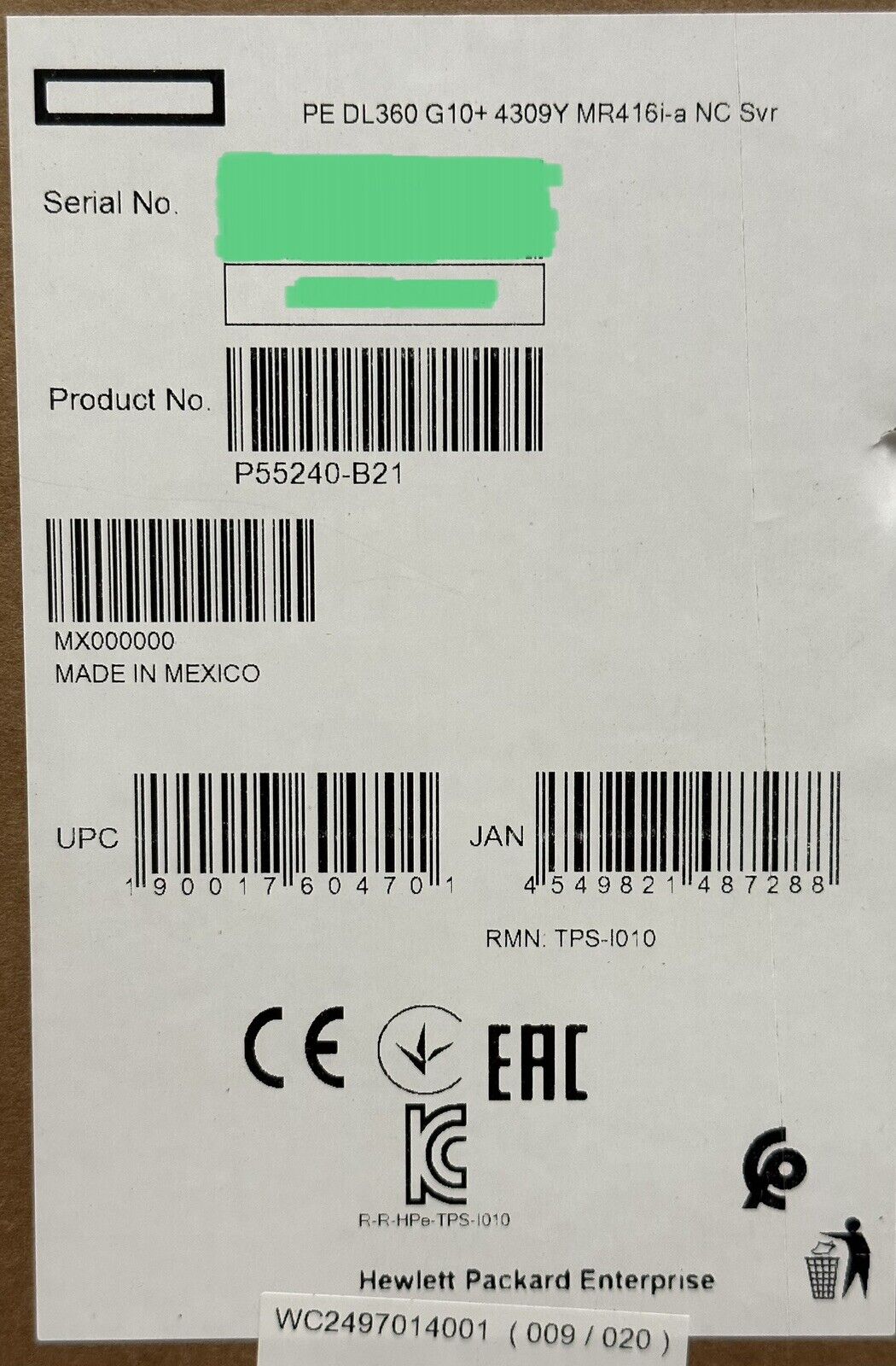 VENDOR: HP Mfg Part#: P55240-B21 UPC#: 190017604534