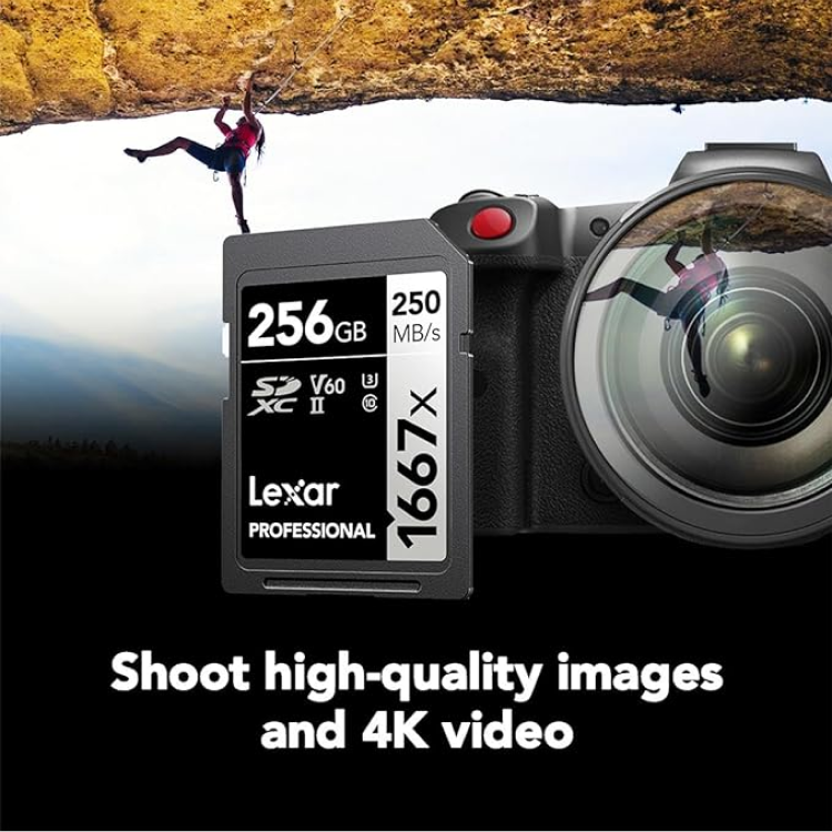 With support for V60, the card guarantees a minimum sustained write speed of 60MB/s, critical for ensuring smooth video without frame drops or interruptions. As part of Lexar's professional line, this memory card is a trusted option for working creatives who need consistent, high-speed data capture and transfer.