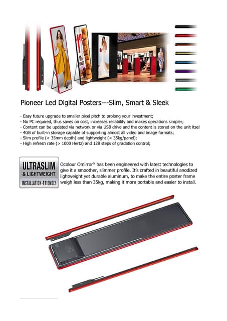 - Comprehensive I/O options including HDMI, DP, DVI, USB, and RS232 support integration into any signage ecosystem.