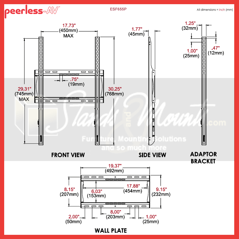 | Mounting Pattern Support | Up to 450 x 745 mm and 400 x 600 mm VESA |