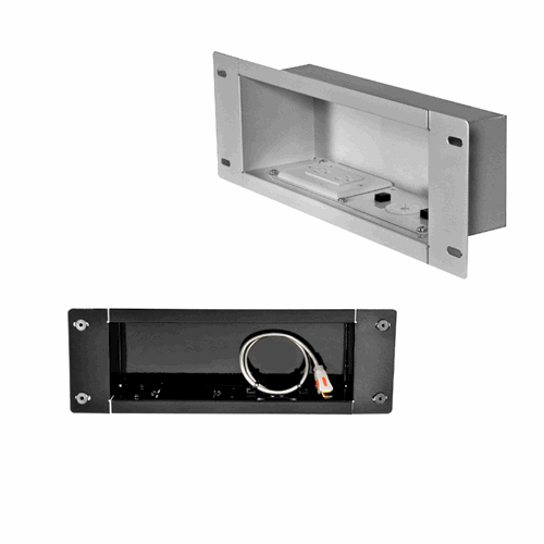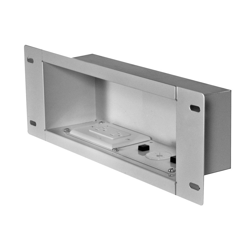 Recessed Cable Managementand Power Storage Accessory Box With Surge Protected Duplex Receptacle