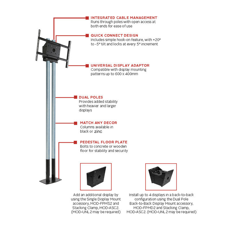 | Form Factor | Dual-Pole Back-to-Back Display Mount |