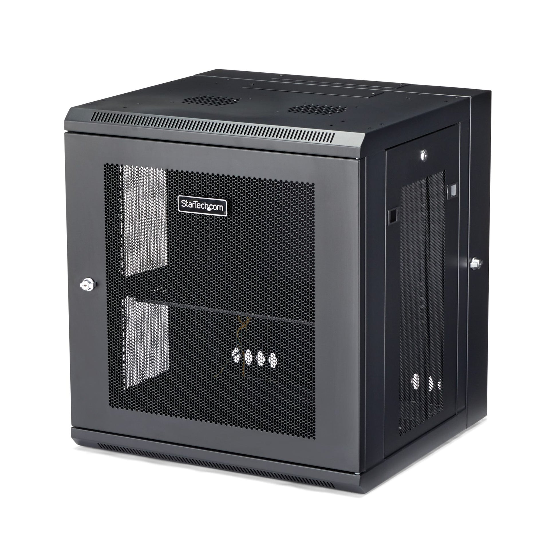 Wall-Mount Network Rack - Steel - Black - 4-POST 12U HINGED WALL-MOUNT RACK: IT Server Rack with 19.8in (50.2cm) maximum mounting depth is perfect for installing network switches out of the way (for example high up on a wall) in your warehouse, office, server room or store locationSpecifications