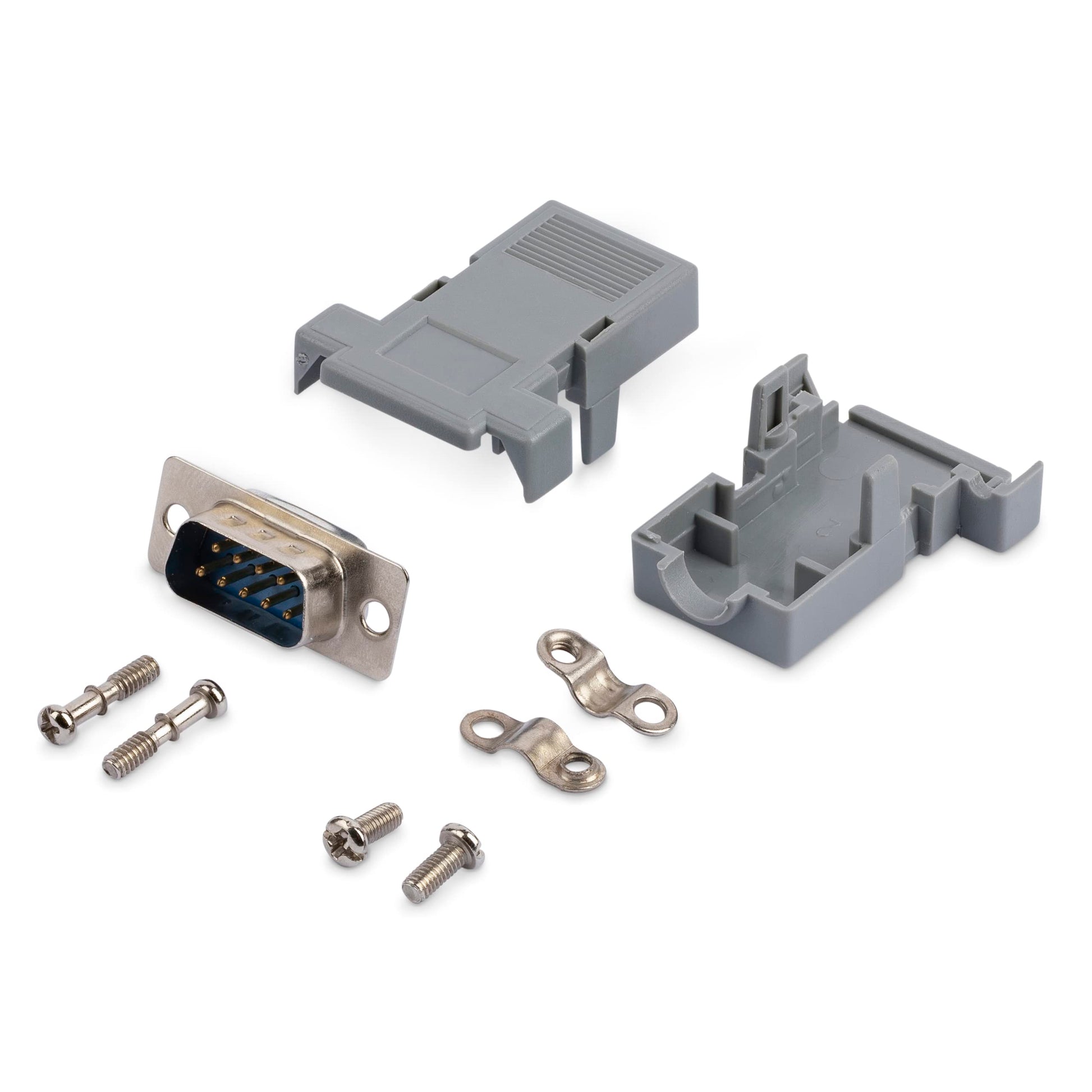 • Plastic DB9 male solder D-Sub connector with 9-pin configuration