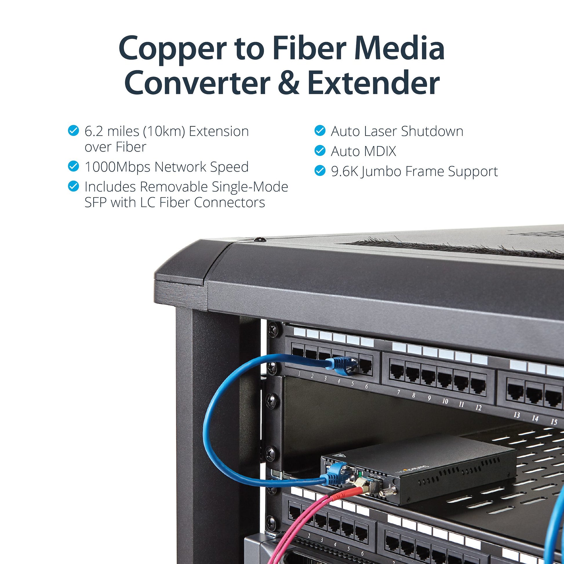 Convert extend a GbE connection up to 10 km (6.2 mi) using single-mode LC fiber cable - Gigabit Ethernet Copper-to-Fiber Media Converter SM LC 10 km - Ethernet Media Converter / GbE Converter - Supports standalone operation or install into ETCHS2U