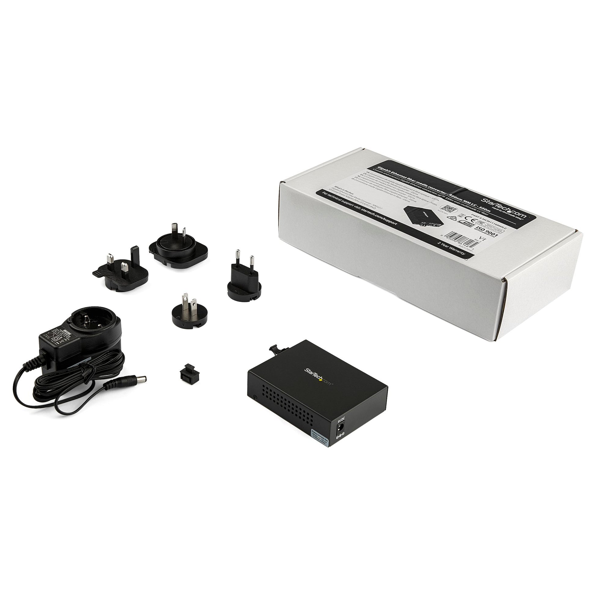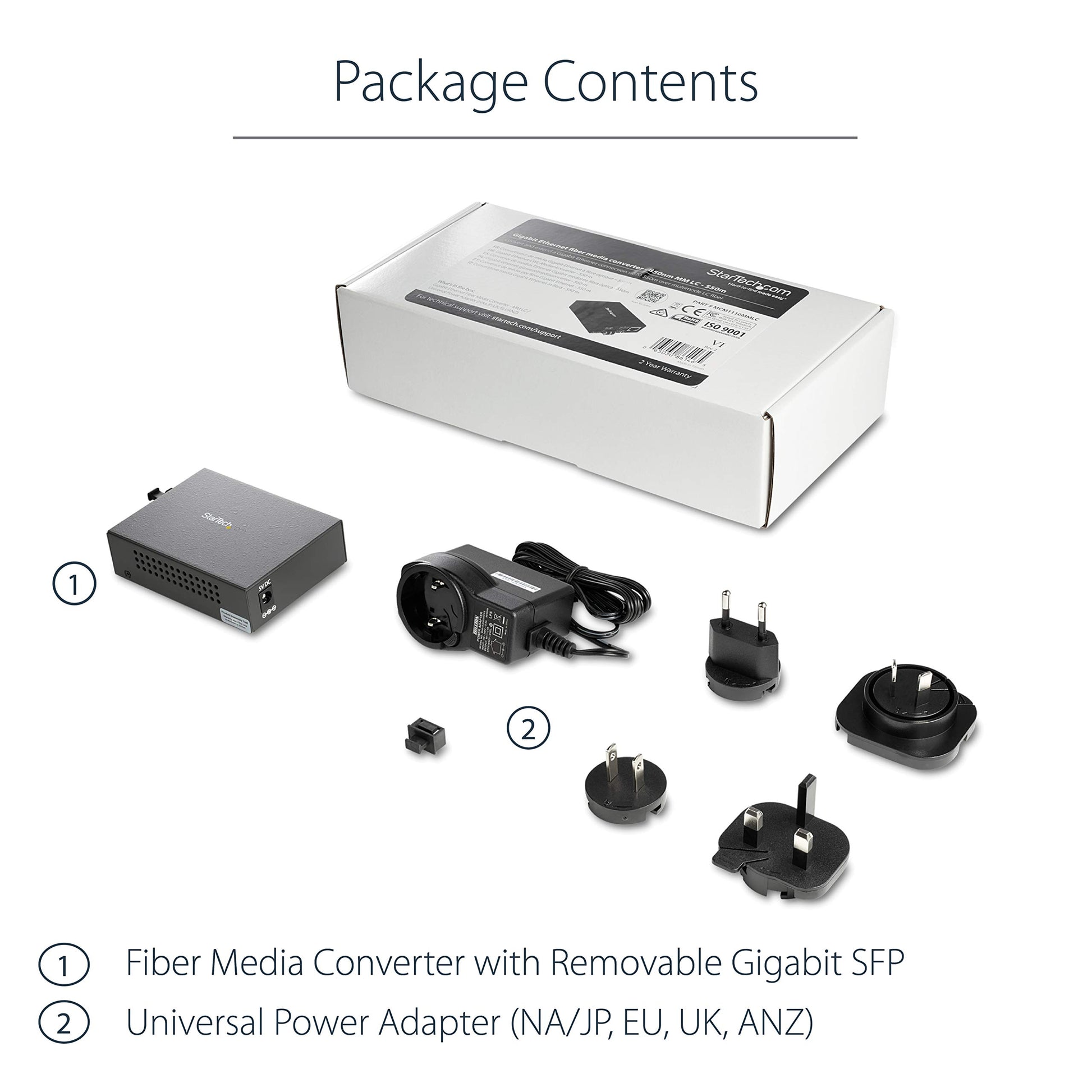 Convert and extend different networks over a Gigabit fiber cable connection up to 550m / 1804 ft - Gigabit Ethernet fiber media converter with SFP transceiver - Compact - 10/100/1000 network extender - 850nm LC multimode Gigabit fiber connectionSpecifications