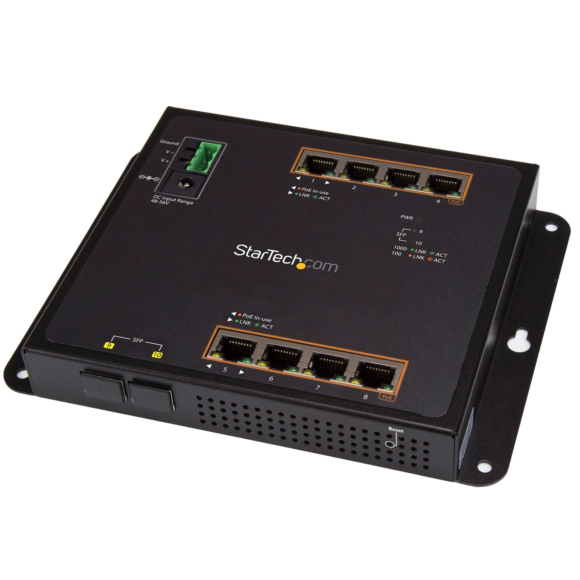 STARTECH Industrial 8+2 Port Gigabit PoE+ Switch, IP-30, DIN Mount
