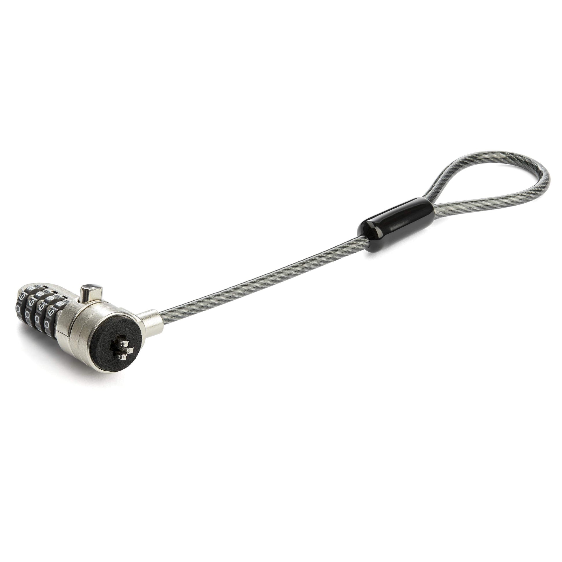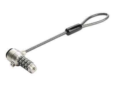 Create a twin/dual/multi-head laptop cable lock by adding this universal expansion loop to secure Kensington style K-Slot computers/monitors/docking stations - 6in anti-theft cut-resistant vinyl-coated steel security cable - 4-Digit Combination lock