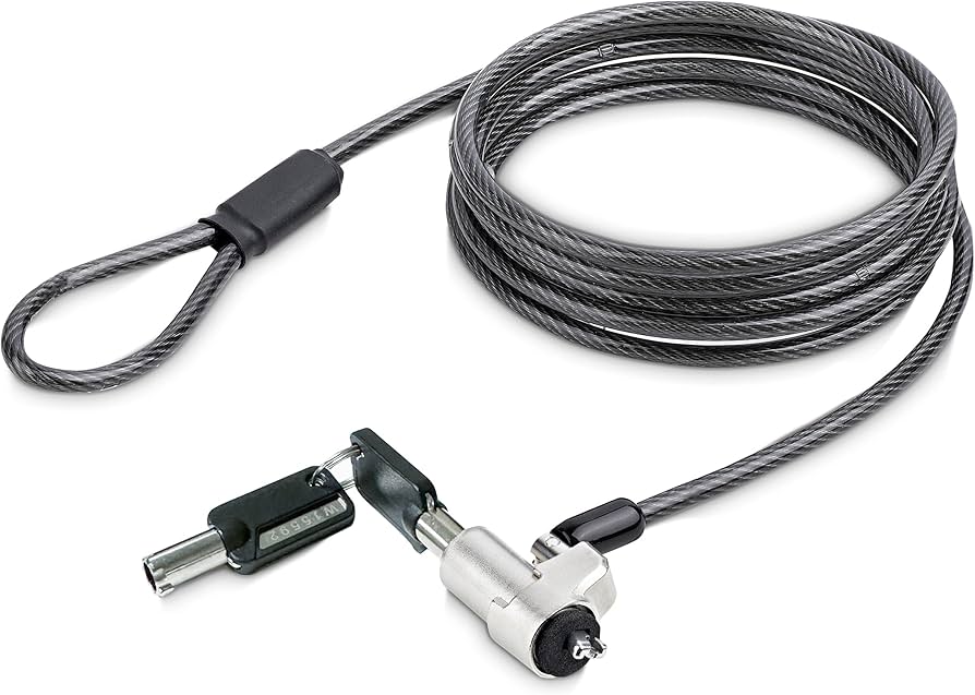 UNIVERSAL LAPTOP LOCK COMPATIBLE W/ NOBLE WEDGE/K-SLOT/NANO SECURITY SLOTS, ADJUSTABLE LOCK TIP - 6.5FT LONG, 0.17IN THICK - KEYED LOCKING CABLE, CUT-RESISTANT STEEL CABLE - 360 DEG. LOCK HEAD ROTATION/90 DEG. PIVOT - LOCK WITHSTANDS 201LB PULL FORCE