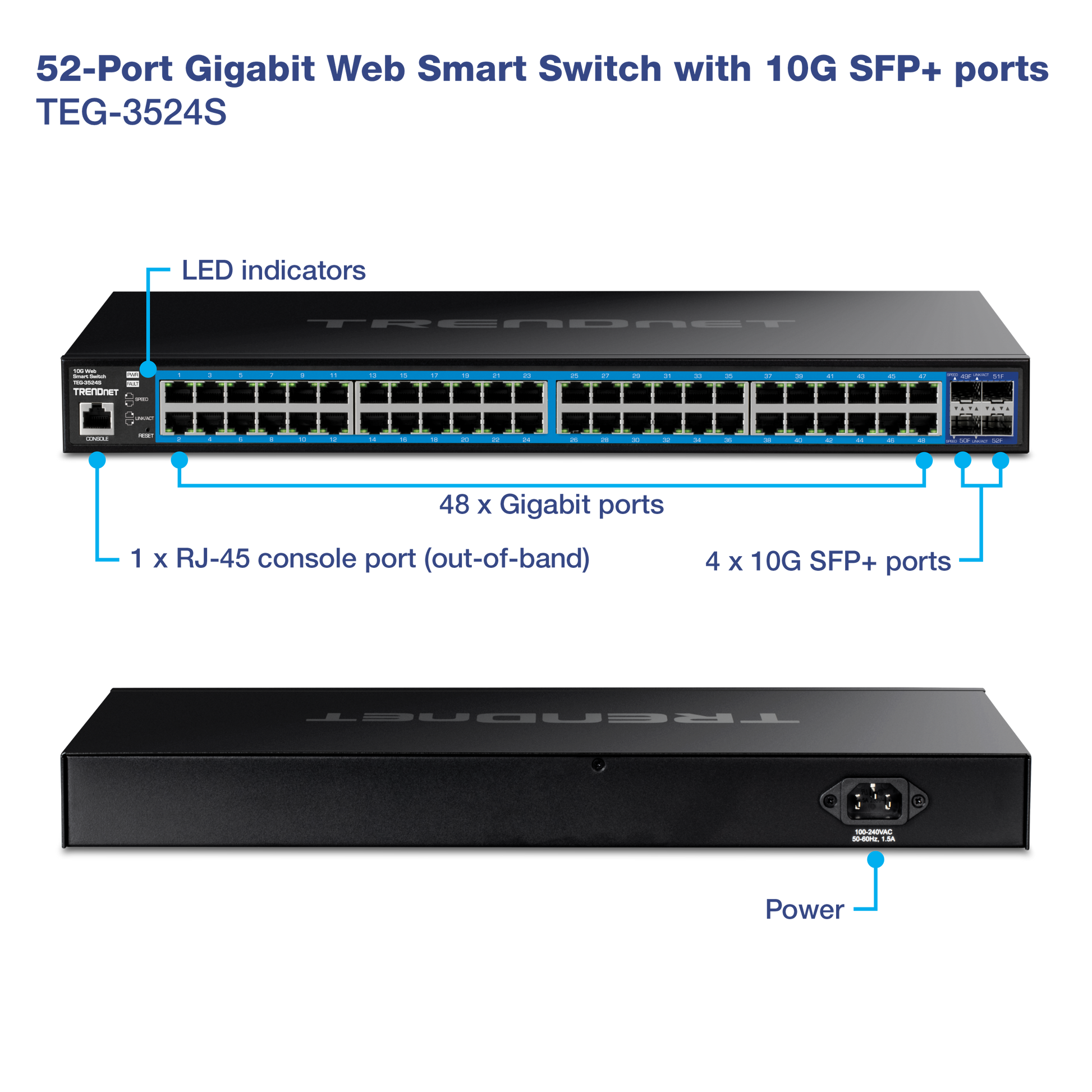 TRENDnet TEG-3524S 52-Port Gigabit Smart Switch with 10G SFP+
