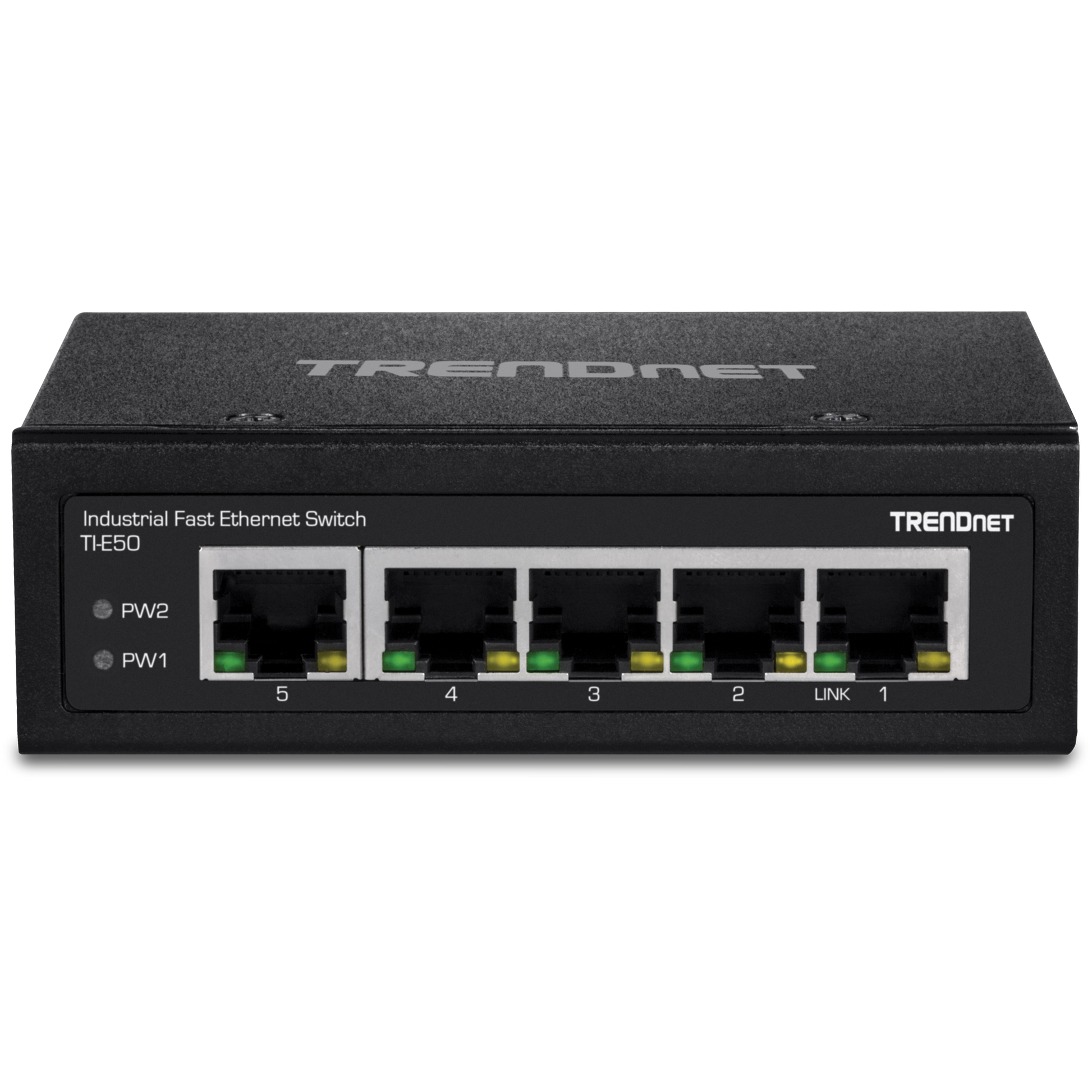 TRENDNET TI-E50 - 5-Port Industrial Fast Ethernet DIN-Rail Switch - Wired - 200Mbps - MTBF 580159 hours @ 25 C - MAC Address Table: 1K entries - LED indicators - Lifetime WarrantySpecifications