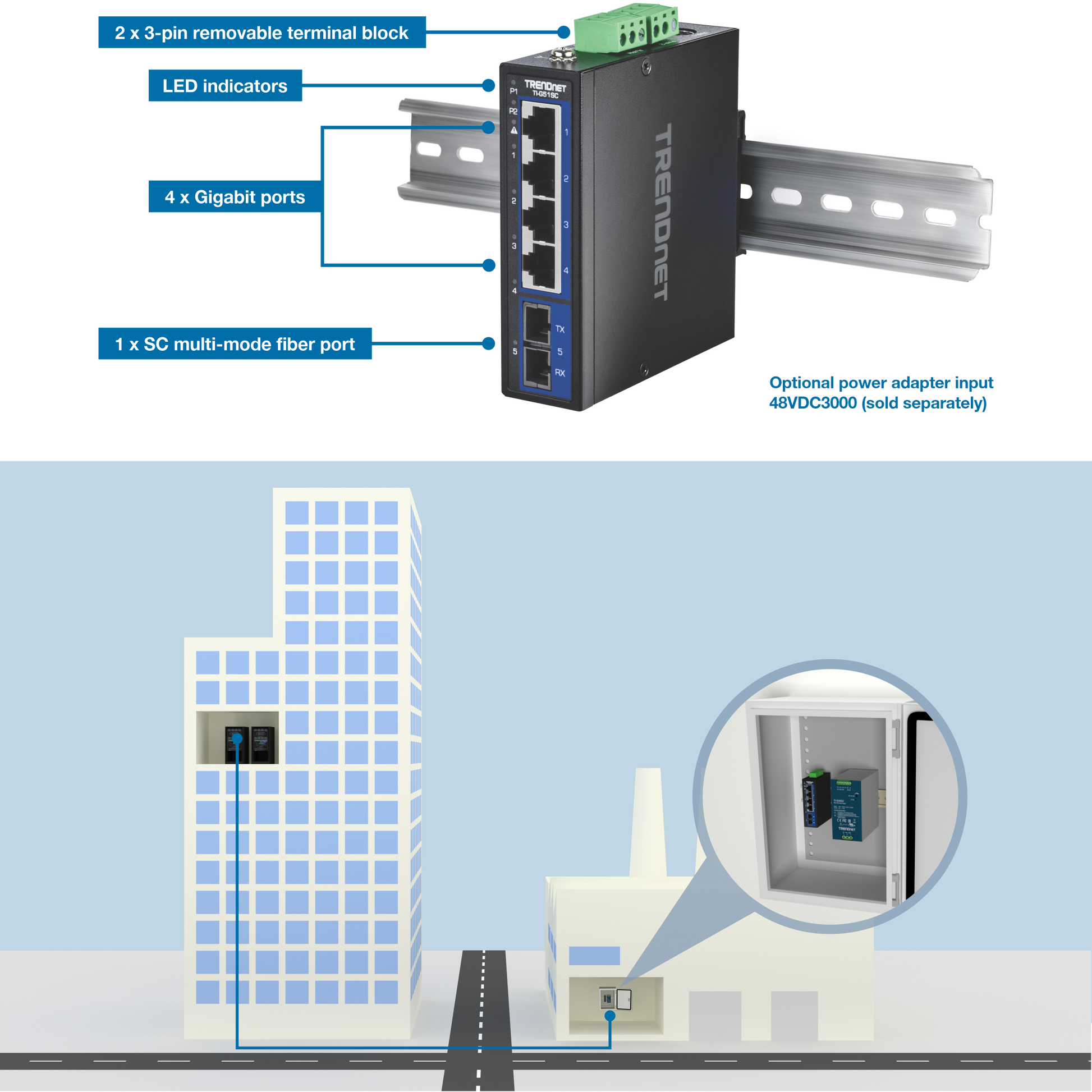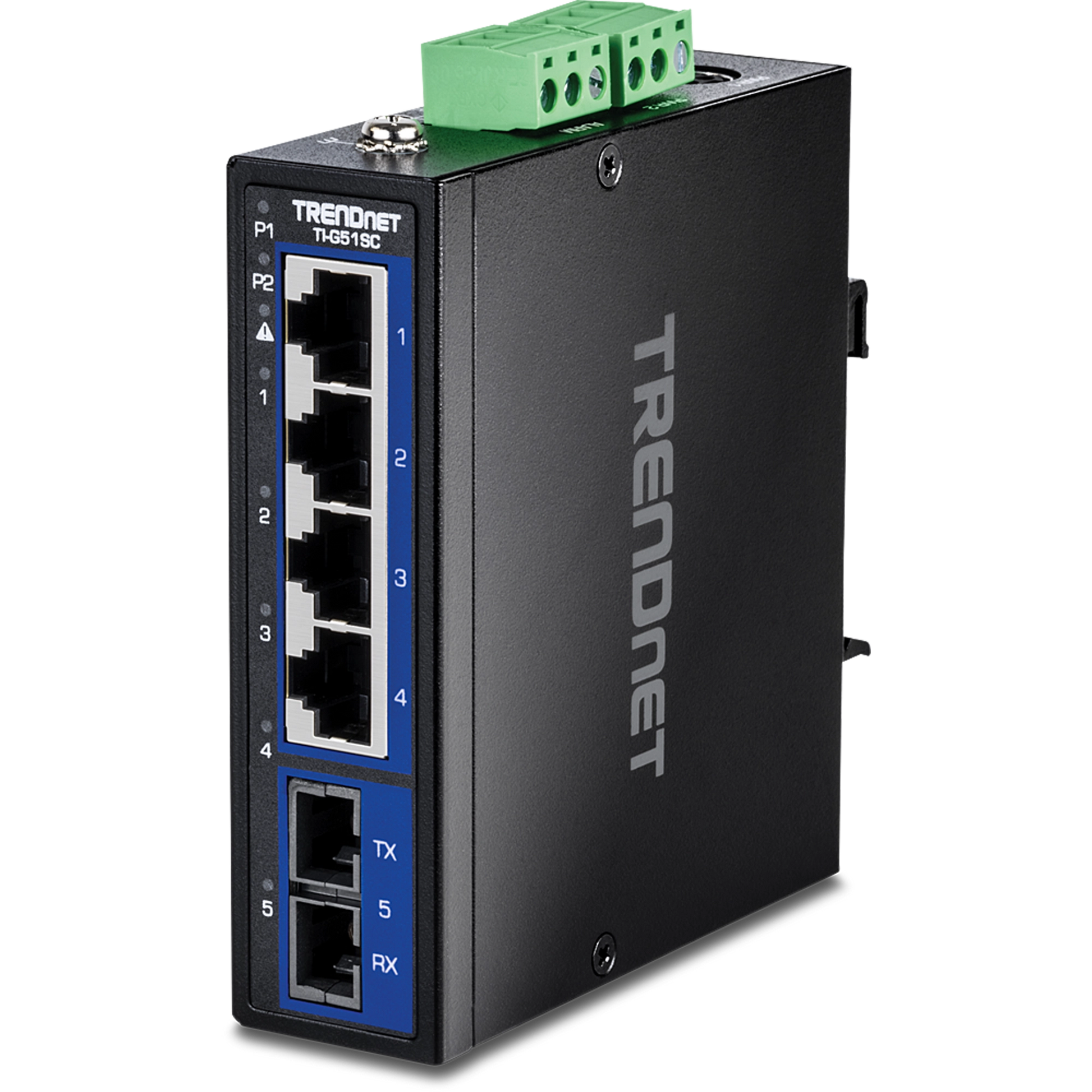 TRENDnet TI-G51SC 5-Port Industrial Gigabit DIN-Rail Switch with SC Port