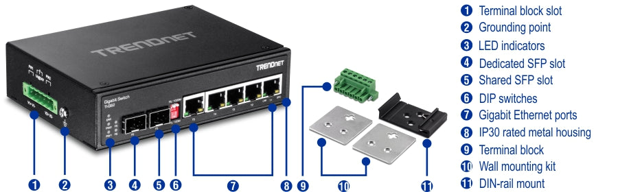 TRENDnet TI-G62 6-Port Hardened Industrial Gigabit Switch