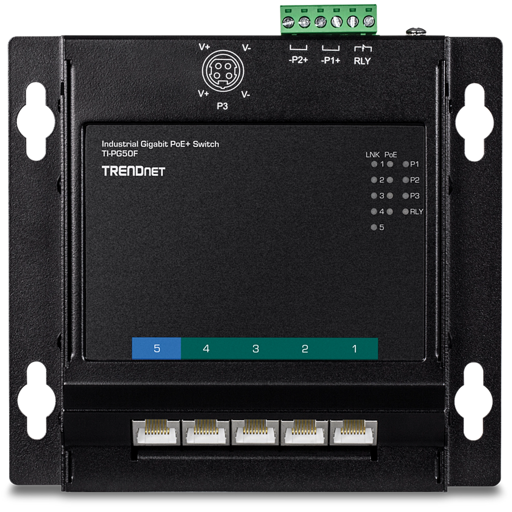 TRENDnet TI-PG50F 5-Port Industrial Gigabit PoE+ Switch