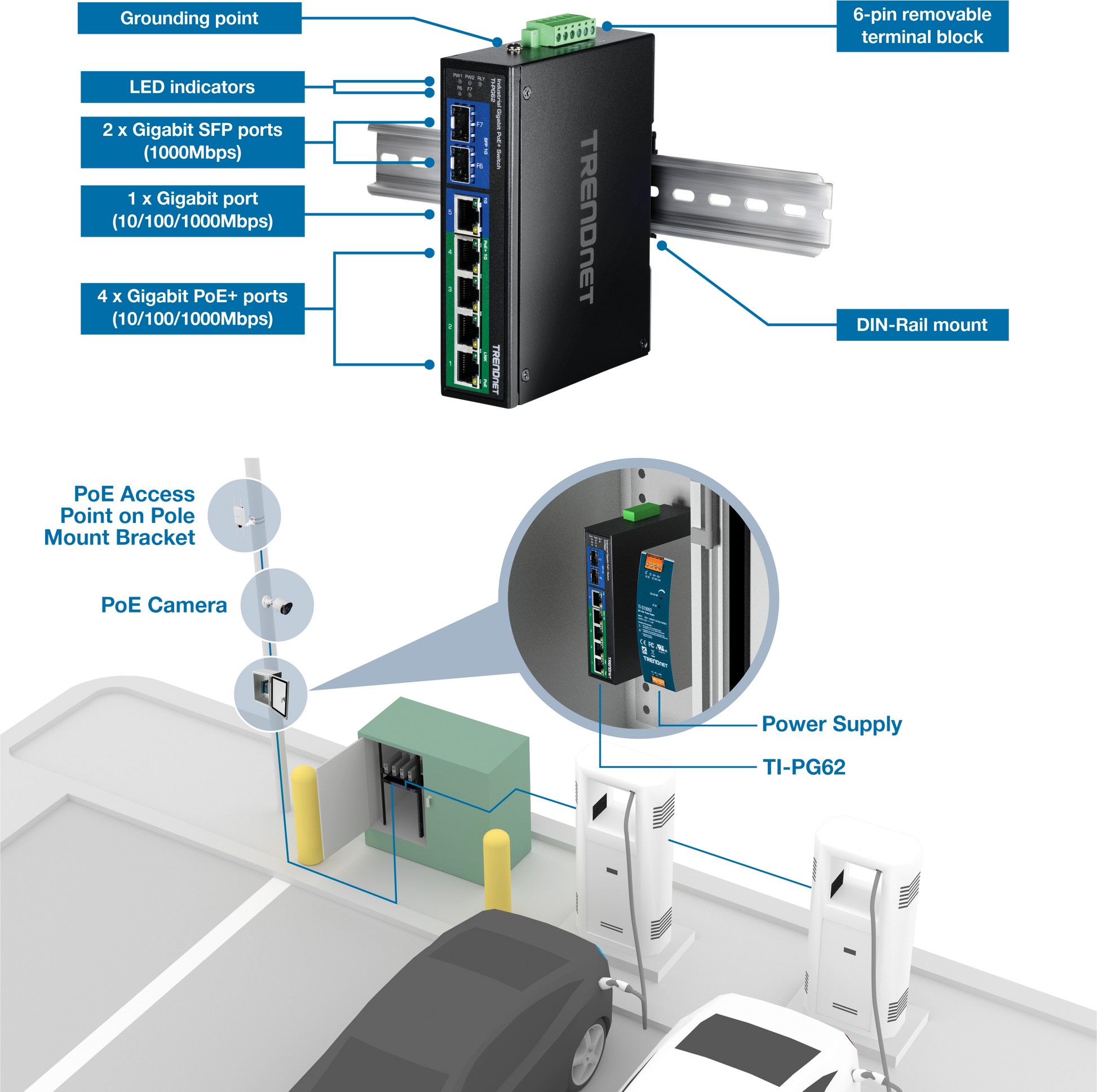 TRENDnet TI-PG62 6-Port Hardened Industrial Gigabit PoE+ Switch