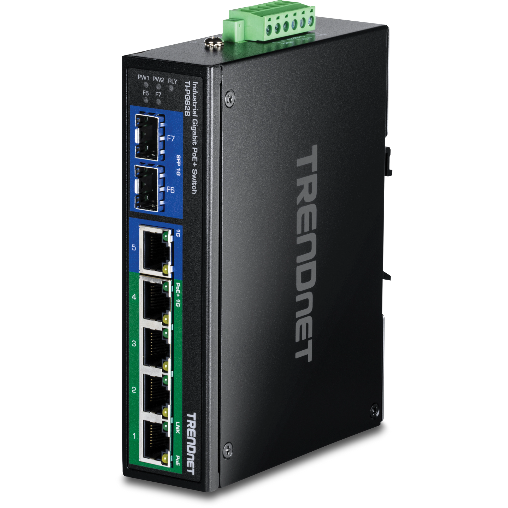 TRENDnet TI-PG62B 6-Port Industrial Gigabit PoE+ Switch with 2 SFP Slots