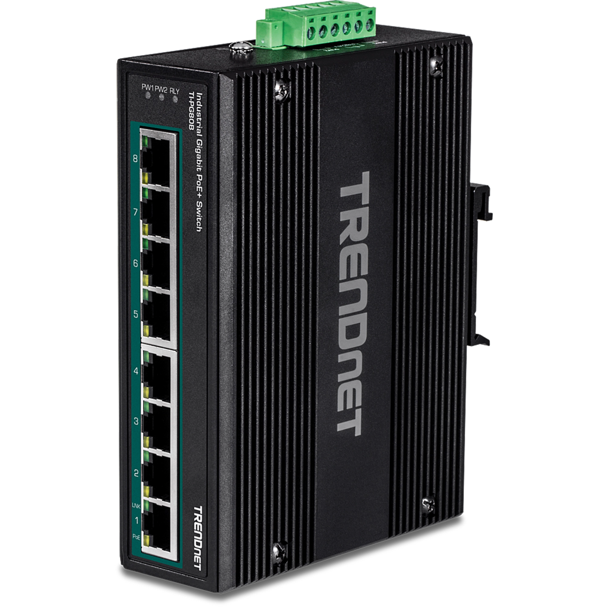 TRENDnet TI-PG80B 8-Port Industrial Gigabit PoE+ DIN-Rail Switch