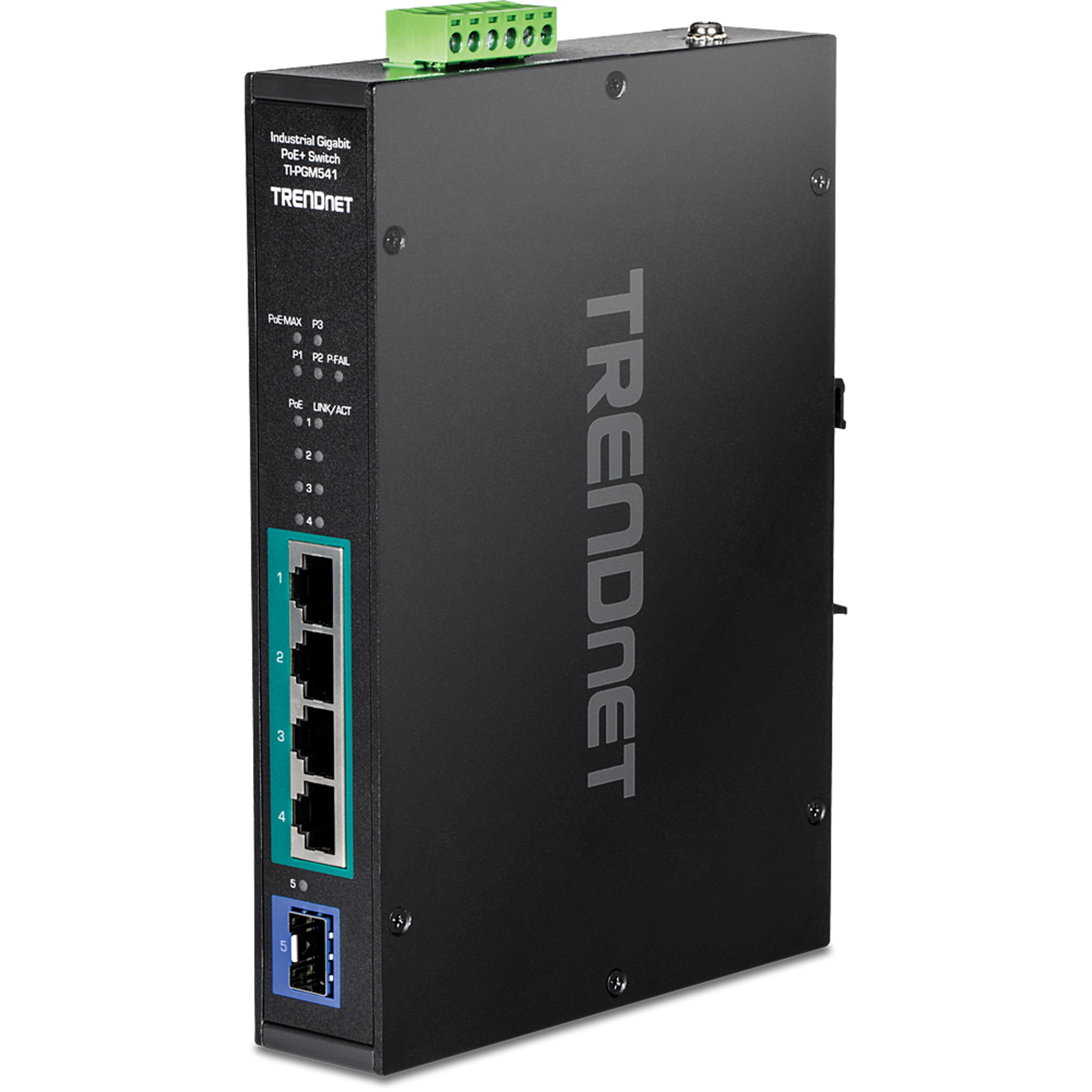 TRENDnet TI-PGM541 5-Port Industrial Gigabit PoE+ DIN-Rail Switch