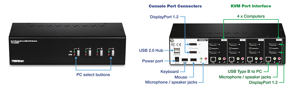TRENDnet TK-440DP 4-Port Dual Monitor DisplayPort KVM Switch