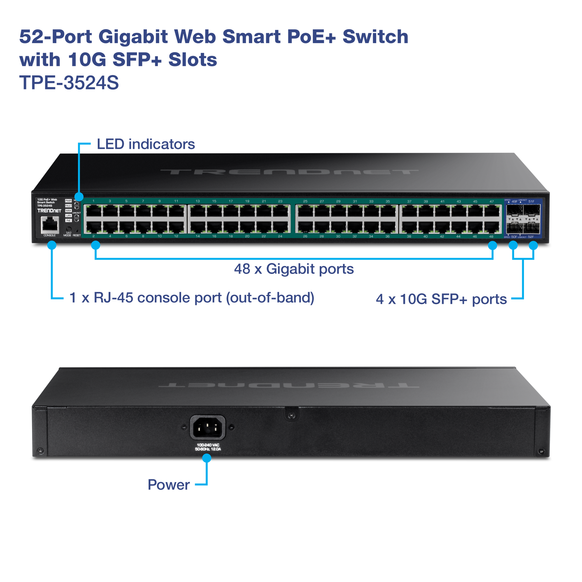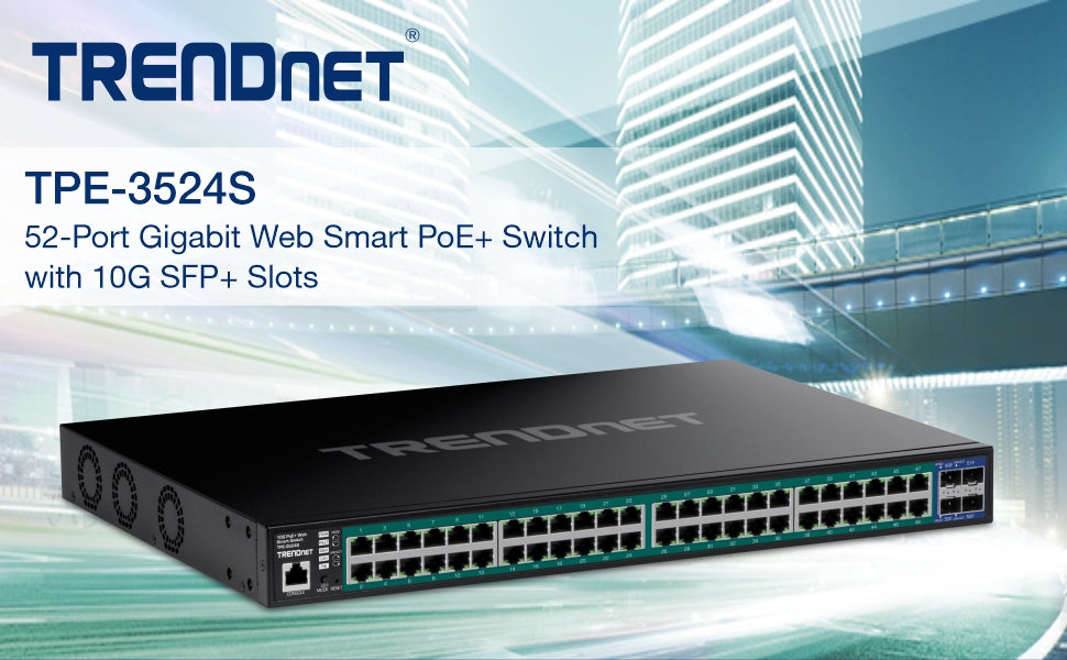 TRENDnet TPE-3524S 52-Port Gigabit PoE+ Switch with 10G SFP+