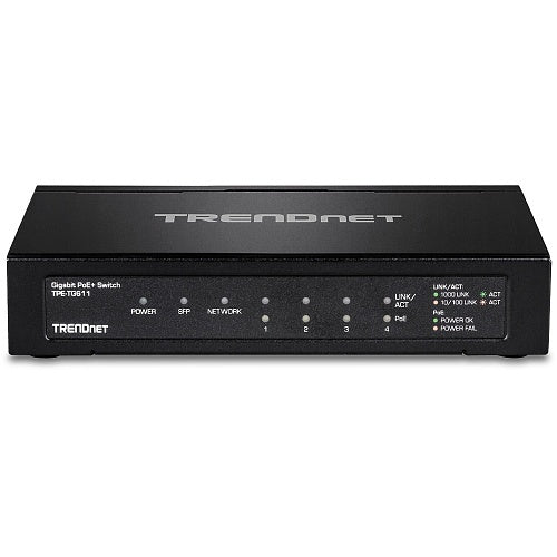 The TRENDnet TPE-TG611 is a 6-port Gigabit PoE+ switch engineered for efficient and scalable wired networking deployments. It supports 65W total PoE power output across five ports and includes a dedicated SFP uplink port for fiber connectivity. With support for Jumbo Frames up to 9KB, a 2K MAC address table, and LED status indicators, it offers efficient traffic handling and easy diagnostics. Designed for reliability and energy efficiency, it provides a compact form factor, MTBF over 1.4 million hours, and TAA compliance, making it ideal for government and enterprise use cases. The lifetime warranty further enhances its value offering.