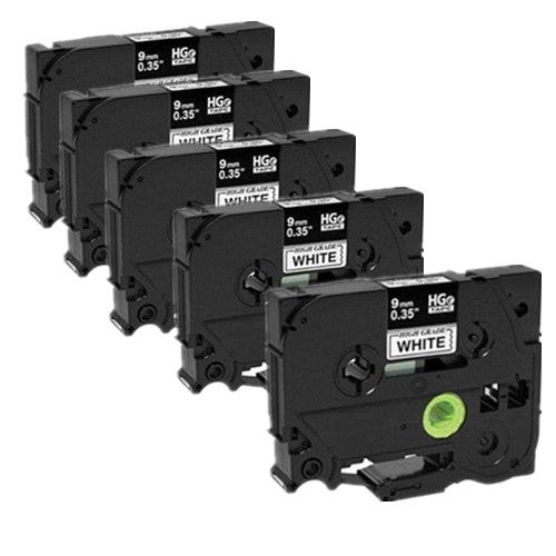 Brother HGE2215PK Black on White Label Tape, 9mm x 8m, 5-Pack