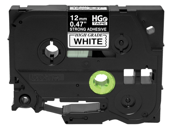 The Brother HGES2315PK label tape pack delivers premium labeling performance with 0.47-inch (12mm) wide labels on an extended 26.2-foot (8m) roll. These labels feature black ink on a white background for high contrast visibility and professional appearance. Engineered with extra-strength adhesive, they are designed to stick securely to challenging surfaces such as textured metal or plastic, making them suitable for demanding industrial, warehouse, or field environments.