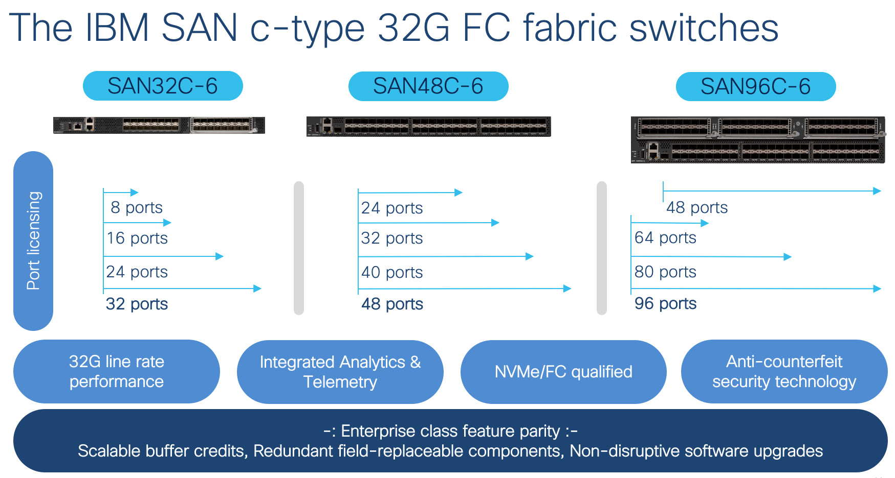 • Supports 48 ports at 32 Gbps, meeting the needs of high-throughput enterprise environments.