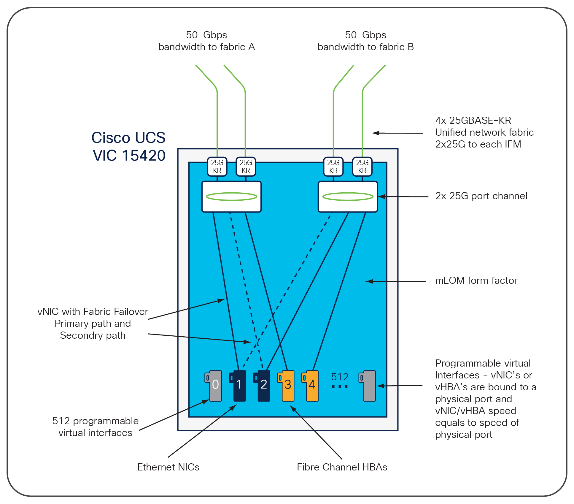 With a data transfer rate of up to 200 Gbps and support for robust networking protocols—such as IEEE 802.1q, 802.1p, 802.3cd, and 802.3ba—the VIC 15235 delivers exceptional bandwidth and interoperability. As a stateless and agile platform, it supports network interface virtualization, offering flexibility for scaling workloads and optimizing server resources. Its secure boot capability adds a critical layer of protection, helping mitigate firmware threats and boost compliance.