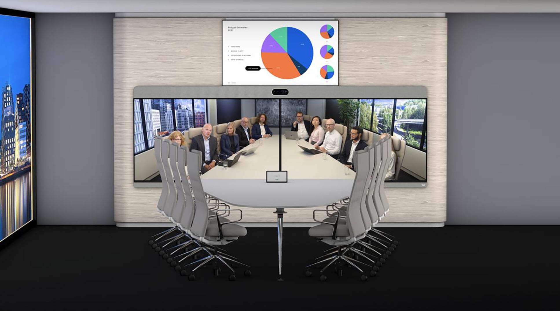 | Form Factor | Integrated Room System with Triple Screens and Quad Camera |