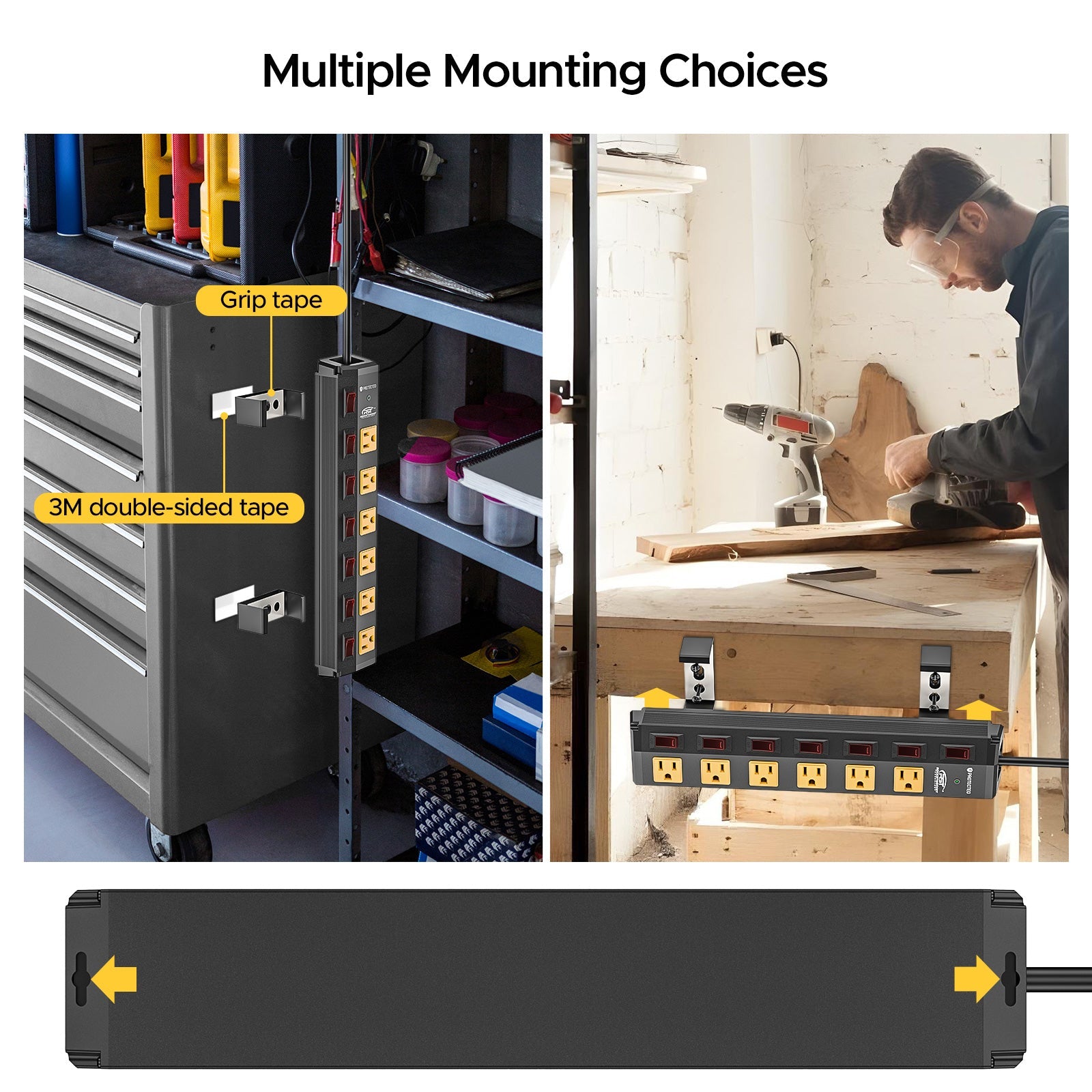 🌟 CRST 6 Outlets Individual Switches Mountable Metal Power Strip