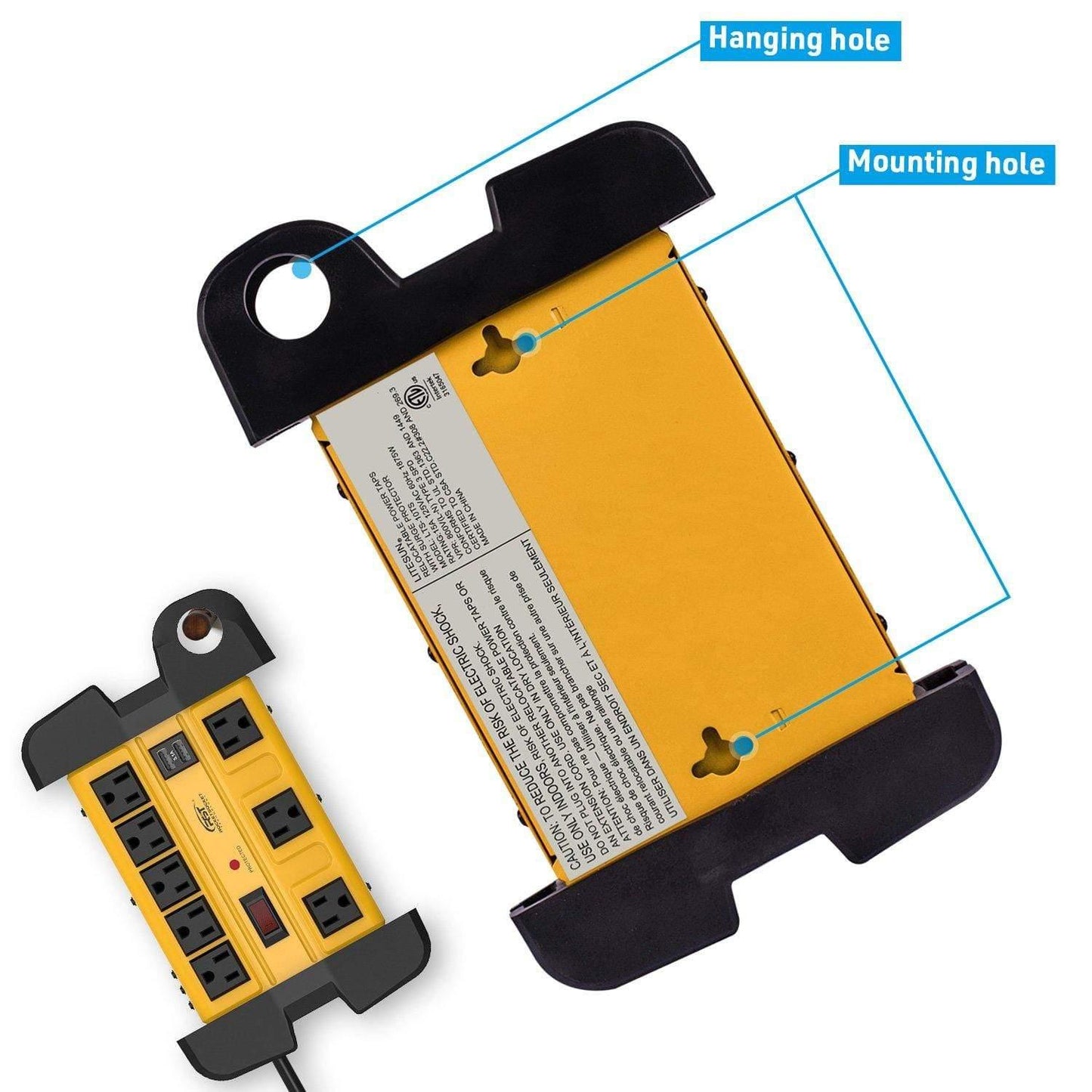 Mount the power strip on walls, desks, or any flat surface using the hanging hole and keyhole slots. This design optimizes space and keeps cords out of the way.