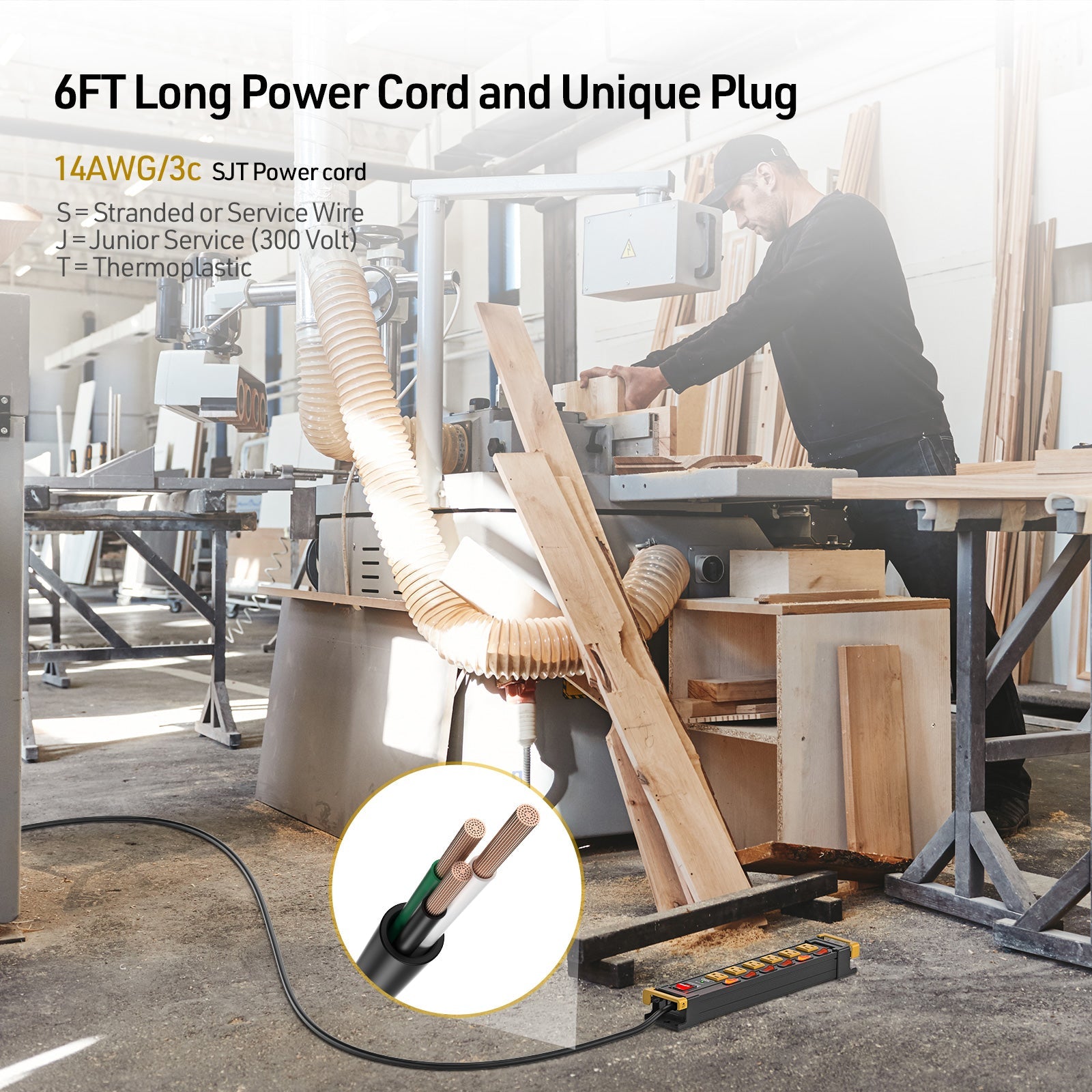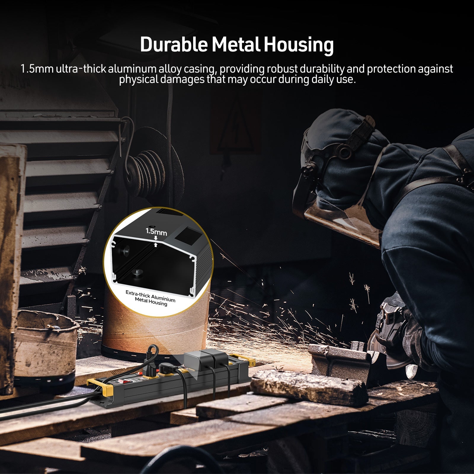 This power strip includes 6 individual switches and a master switch. Turn devices on/off individually. It offers 1020 Joules of protection against surges, spikes, or outages. Keep your tech safe with reliable switching. The durable metal aluminium construction ensures longevity. ๐ ๏ธ
