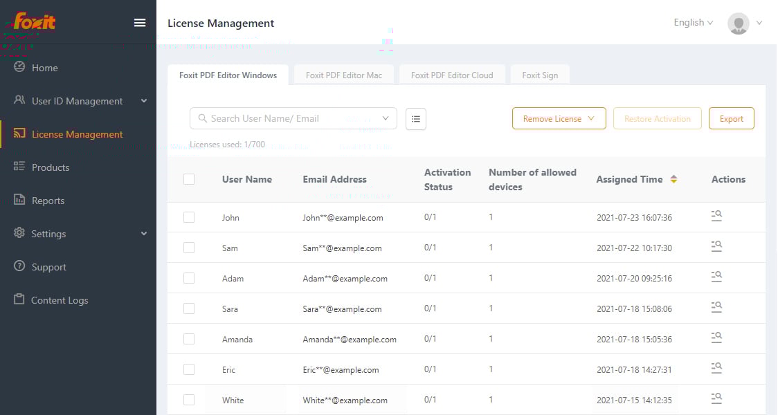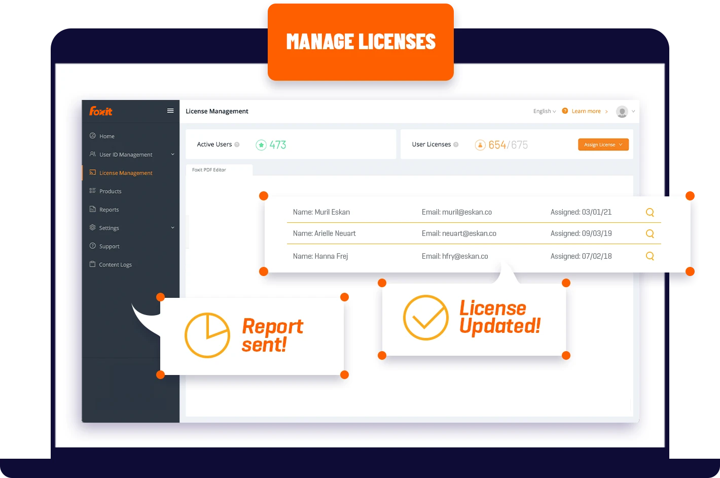 The FOXIT Admin Console (Hosted Solution – price per user/year) is a cloud-based administrative platform designed to simplify enterprise license management for Foxit software products. This solution provides IT administrators with a centralized dashboard to manage user assignments, monitor licensing usage, and control product deployment across distributed teams. Its hosted nature eliminates on-premises infrastructure requirements.