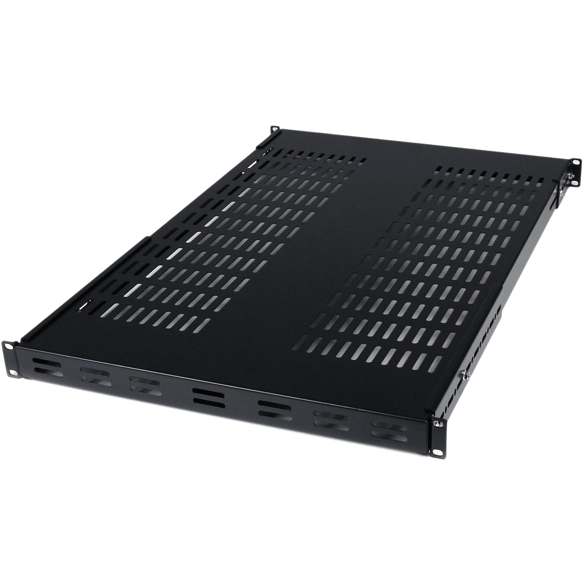 StarTech 1U Adjustable Vented Rack Mount Shelf, 175lbs Capacity, 19.5–38in Depth