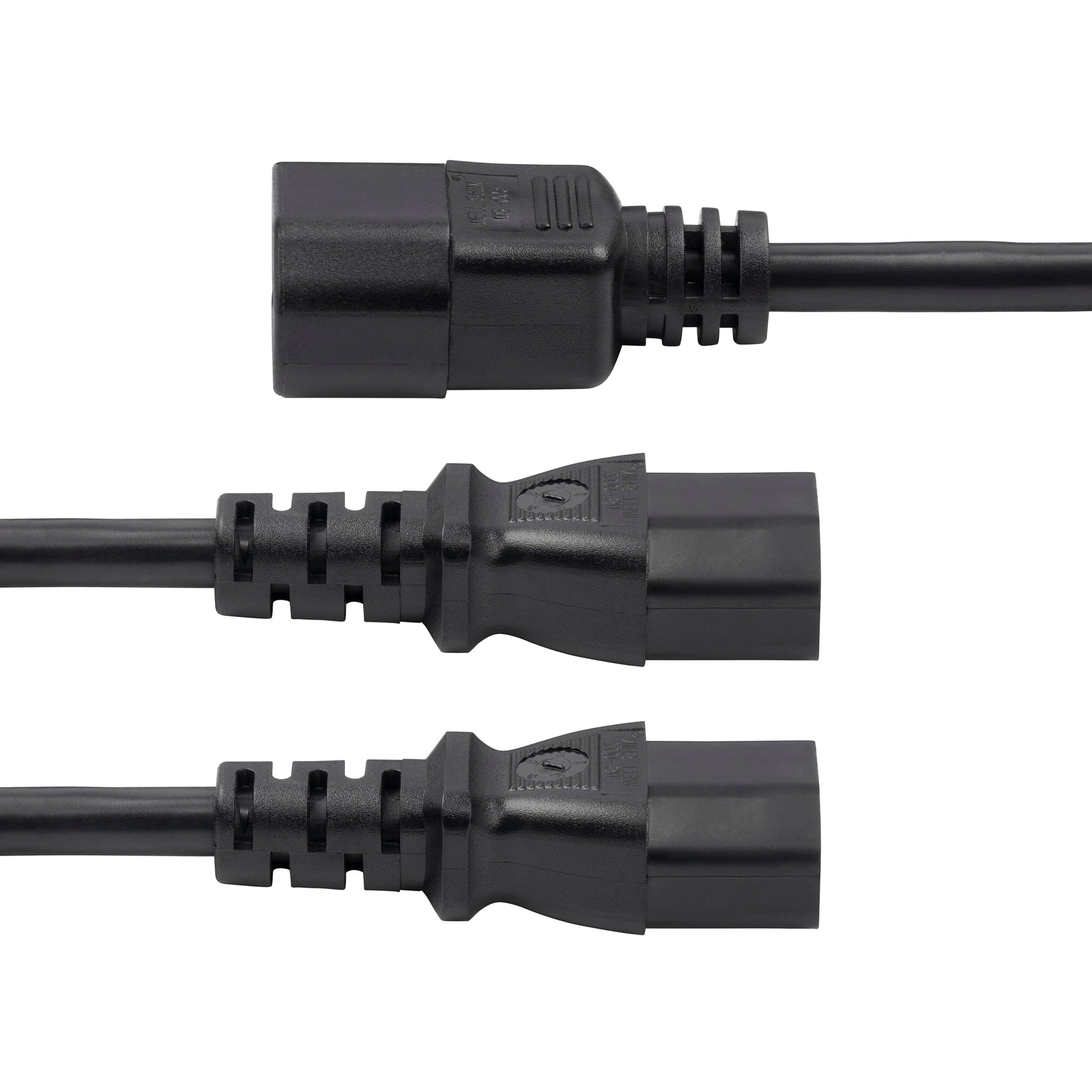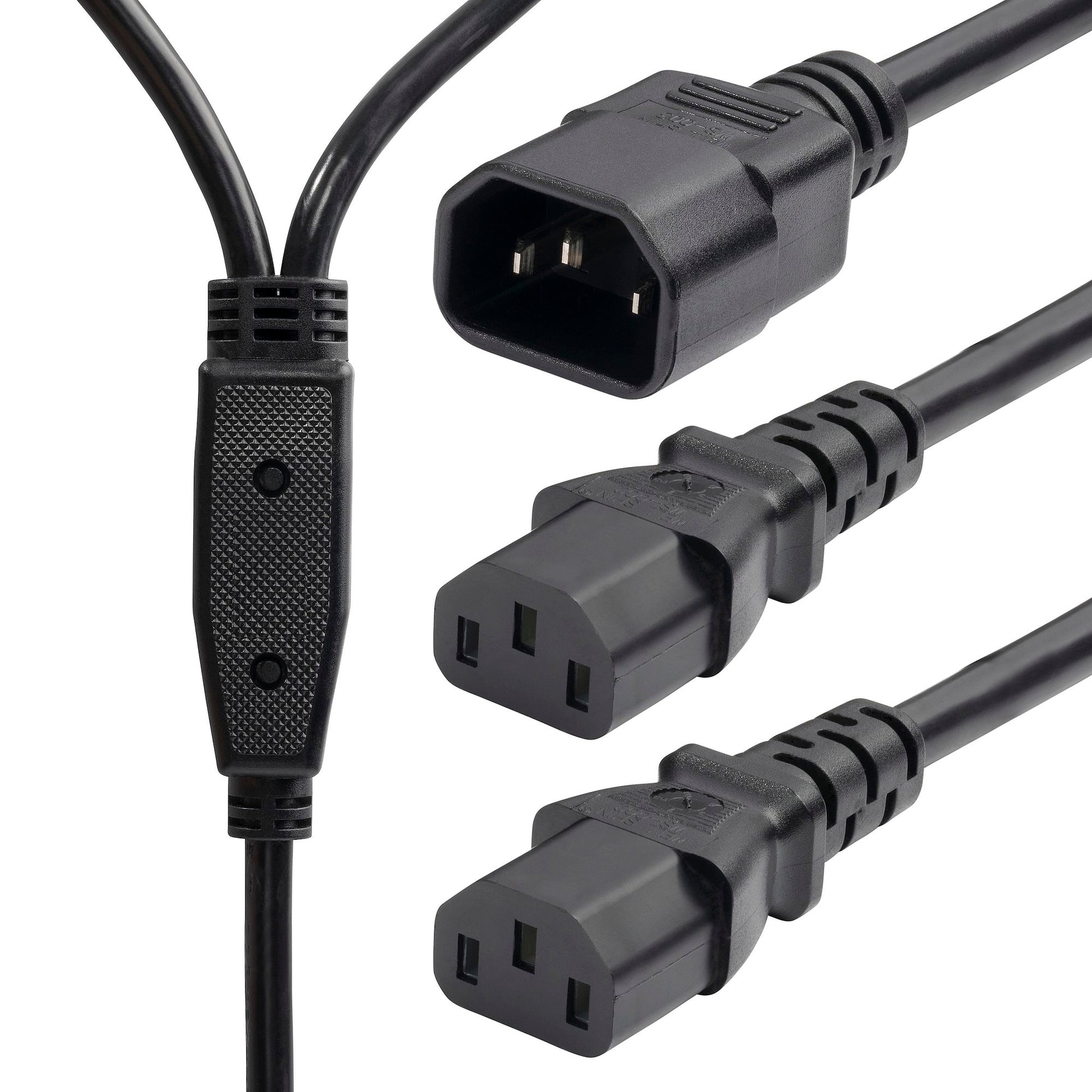 • 6ft (1.8m) Y-splitter configuration with IEC 60320 C14 to 2x C13 connectors