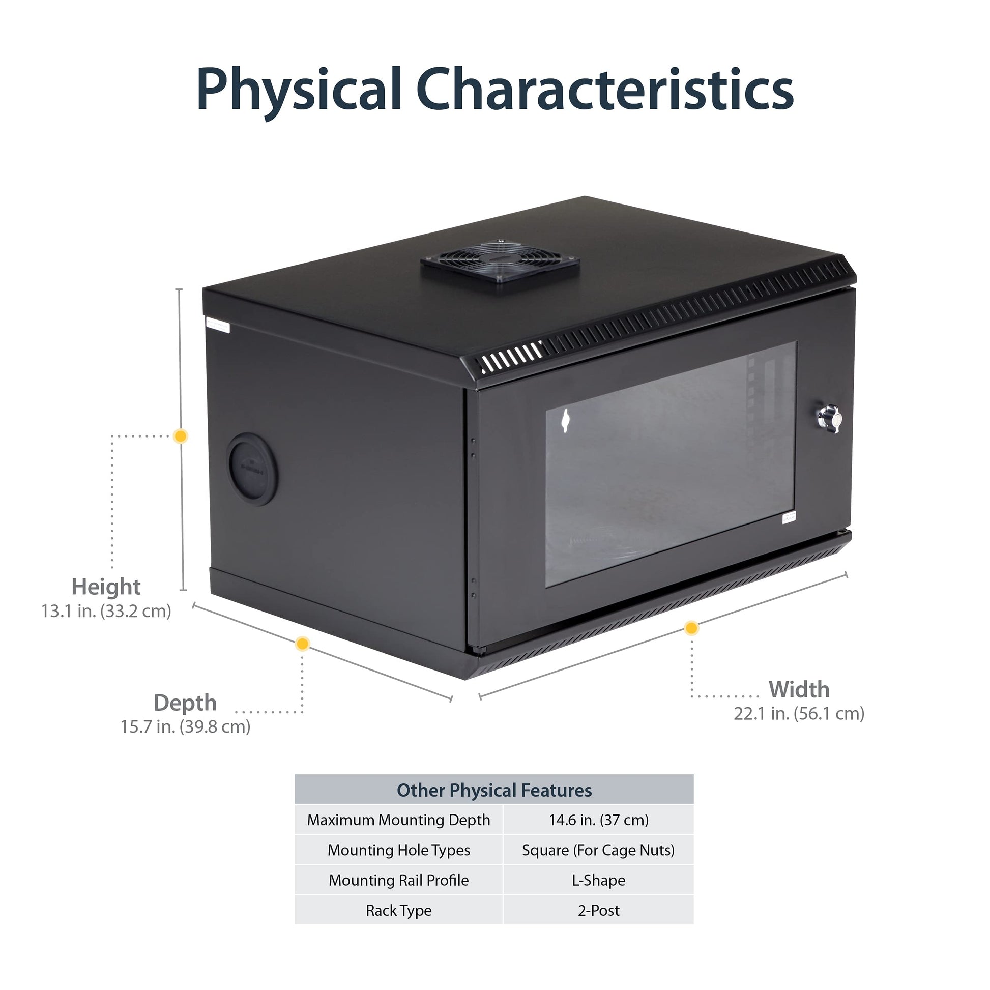 Wall-Mount Server Rack is ideal for installing your rackmount IT equipment - Small data rack has an enclosed / lockable design - 6U wall-mounted network cabinet is made of heavy-duty steel - Ships fully assembled - EIA/ECA-310-E Compliant
