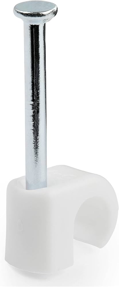 100 cable clips with nail - For cables from 0.20-0.28in (5-7mm) - Durable PE material/steel nail/Securing & mounting RJ45 CAT5/CAT6/RJ11/Ethernet/AV/Coax cord to baseboards/wood/drywall/masonry - TAA Reusable White Wire Holding Clamps/Fasteners/Tacks