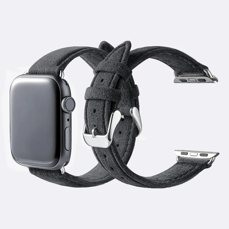 Our Classic Apple Watch Bands are crafted in authentic Alcantara® made in Italy. They are extremely soft and comfortable on the skin. The strap are both stain resistant and water resistant.
