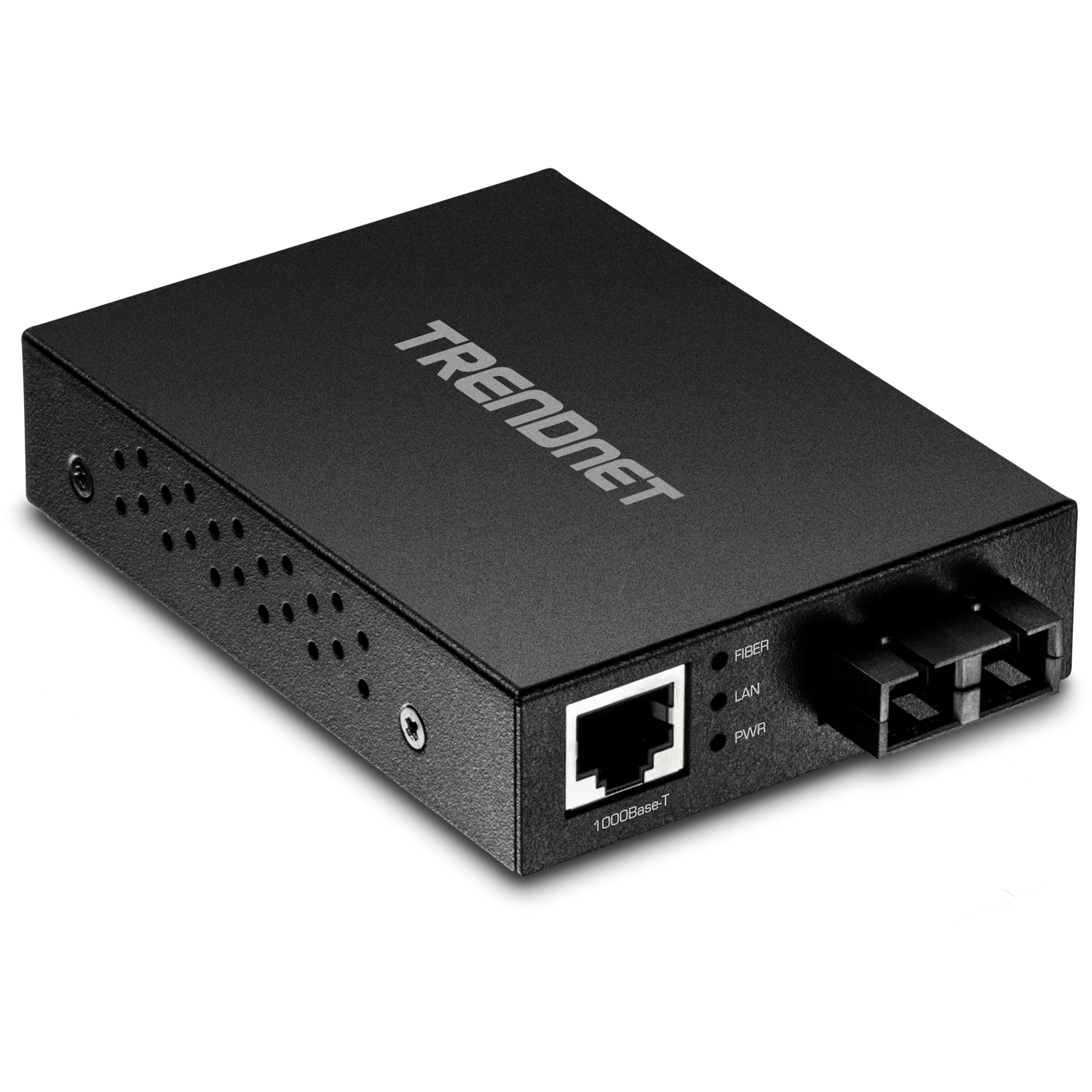 The TRENDNET TFC-GMSC is a high-performance Gigabit Ethernet media converter designed to transparently connect 1000Base-T copper networks to 1000-SX fiber infrastructures. Engineered with an external form factor, the compact unit features one Auto-MDIX Gigabit port and one SC-type fiber port, supporting both 100/1000 Mbps fiber connectivity. This converter supports multi-mode optical fiber with distances of up to 550 meters for 50/125 µm cables and up to 220 meters for 62.5/125 µm cables, and allows Cat.5e/6 cabling up to 100 meters.