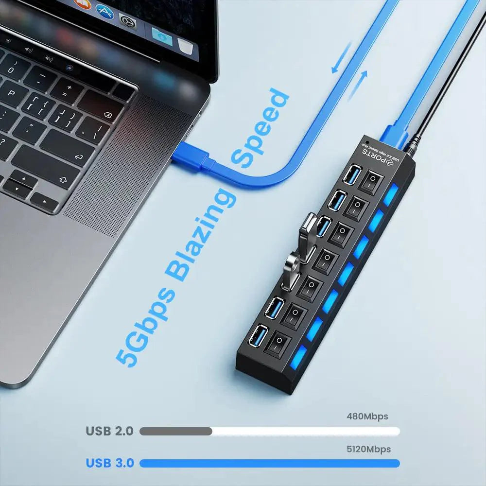USB Hub 2.0 Hub Multi USB Splitter With Switch
