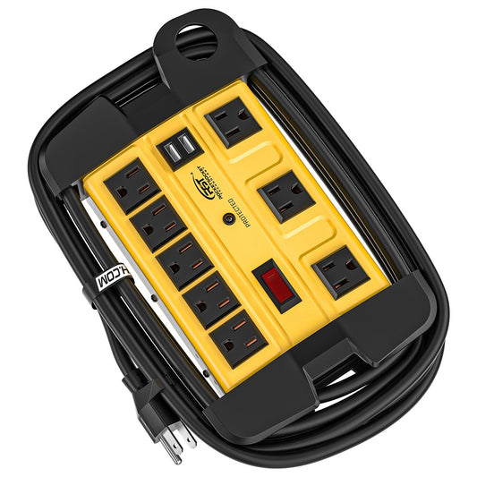 CRST 8 Outlets Dural USB Mountable Metal Power Strip Surge Protector with Cord Wrapping Design, Optional 15FT or 6FT Power Cord