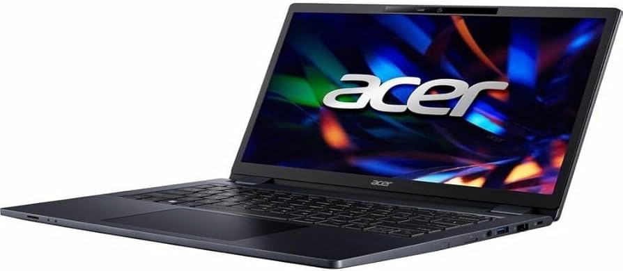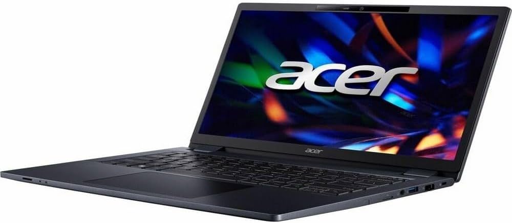 Ordinateur portable ACER TMP414-53-785A 14 pouces WUXGA 1920 x 1200 IPS, processeur Intel Core i7 1355U, 16 Go de RAM, SSD NVME PCIE GEN4 512 Go, carte graphique Intel Iris XE, jusqu'à 9 heures d'autonomie, Windows 11 Pro 64 bits, lecteur d'empreintes digitales, TPM 2.0, emplacement pour verrou Kensington, garantie limitée de 2 ans.Caractéristiques